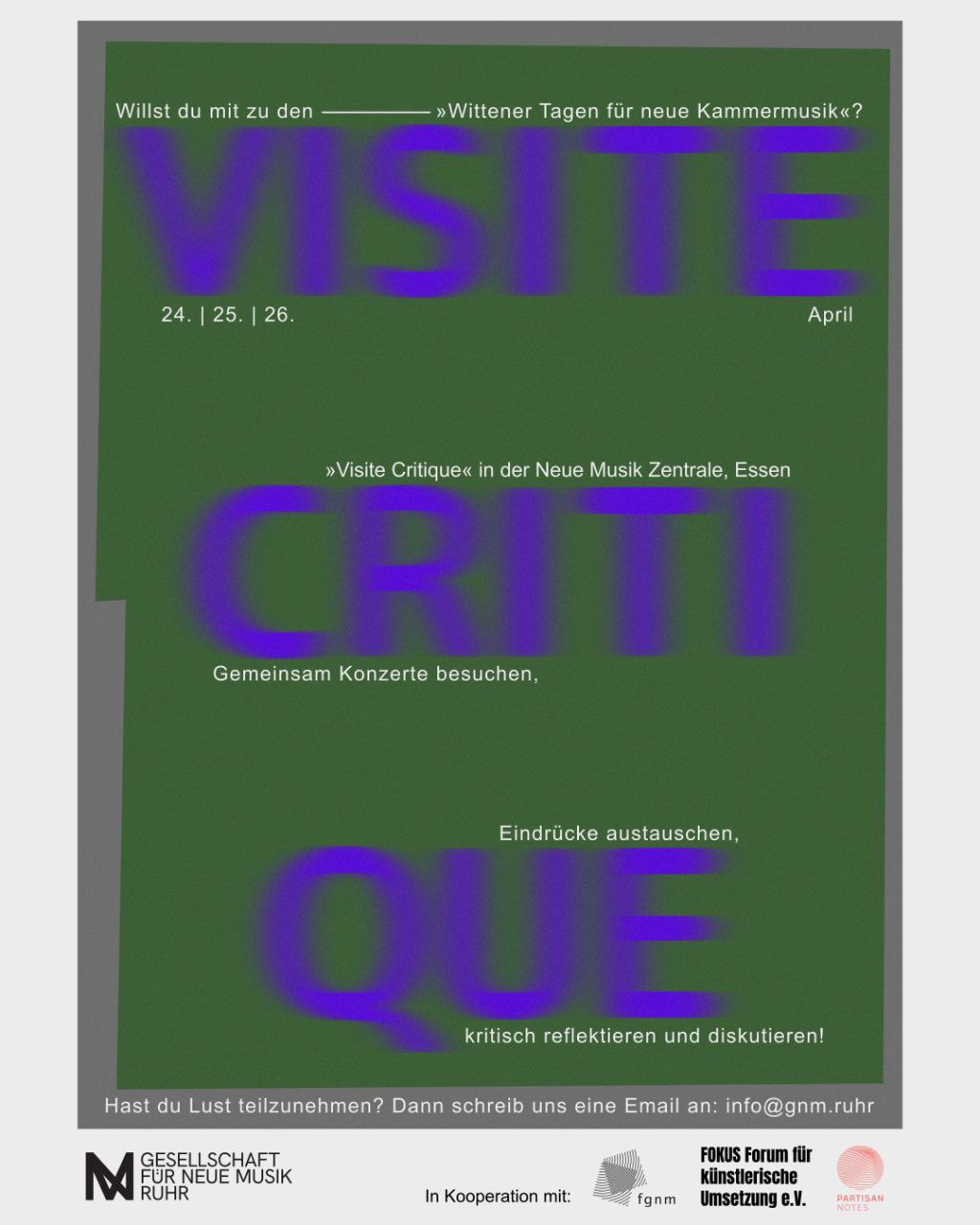 In Kooperation mit Frankfurter Gesellschaft für Neue Musik, Leipzig FOKUS Forum und Partisan Notes: